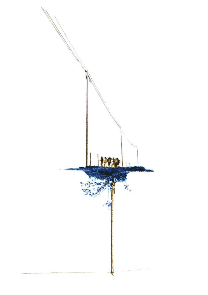 Chacune comporte un mouvement répétitif et circulaire. Ces ballets prennent place dans la partie supérieure de l’environnement représenté, la partie inférieure présentant un élément vertical inerte.